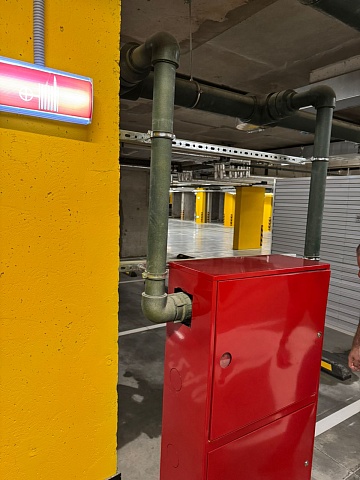 В неотапливаемых подземных, а также открытых надземных парковках, где температура воздуха может быть ниже 0 °С, применяются воздушные системы пожаротушения АУП и ВПВ.